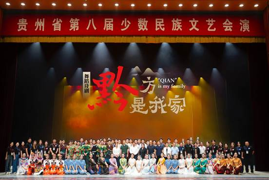 9月22日,贵州省第八届少数民族文艺会演期间,由我集团代表团选送的舞蹈诗剧《黔方是我家》在贵州饭店国际会议中心隆重上演。此次会演由贵州省人民政府主办,贵州省民族宗教事务委员会、贵州省委宣传部、贵州省文化和旅游厅、贵州省广播电视局、贵阳市人民政府共同承办。我集团100余名师生倾情演出。演出吸引了近千名观众现场观看。 剧照一 剧目《黔...