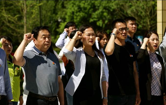 活动开始后,全体教工党员向革命烈士默哀,用哀思缅怀革命先辈,向革命烈士纪念碑敬献花篮,表达最崇高的敬意和最深切的悼念。随后,全体教工党员重温入党誓词,宣誓声铿锵有力、响彻云霄,用铮铮誓言表达了对党的无限忠诚和热爱,进一步铭记了党员的初心使命。