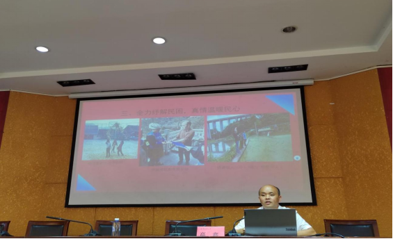 高鑫认真对照“一宣六帮”工作职责,与全体第一书记和驻村干部一道,按照“严纪律、树形象,抓学习、强素质,抓宣讲、聚民心,抓资源、促发展,抓落实、显担当”的工作方法,开展驻村工作。他主要从五个方面进行了汇报,与大家共同分享了他的驻村经历和故事。一是坚持党建引领,筑牢发展根基。火车跑得快,全靠车头带。要推进乡村振兴,必须充分发挥农村基层党组织战斗堡垒作用。驻村的第一件事就是与村“两委”深入沟通,走访党员,摸清村党组织建设基本情况,梳理村党支部建设存在的薄弱环节。二是心系事业发展,彰显责任担当。关心老百姓的事业发展,扎根基层,奉献基层,为老百姓真心办事,用心谋事,千方百计让需要帮助的老百姓过得更好。严格落实“四个不摘” 要求,全力做好“一达标两不愁三保障”工作。三是全力纾解民困,真情温暖民心。当面对村民的困难和诉求,唯有换位思考,把自己变成村民,把他们的事当成自己的事,才能主动担当作为,为群众办实事、办好事、解难题。坚决守牢防止规模性返贫底线,坚持往一线走、向群众学、用真情于,为报京高质量发展贡献智慧和力量。四是加强民族团结,树立文明新风。通过阅读报京村志,挖掘整理北侗文化,加强民族团结,充分挖掘整理北侗优秀民族文化,培养非遗传承人;对村民进行传统手工业制作技能培训,共培训村民 400 余人次;发展非遗文创产业,打造非遗文化品牌,让农民实现增收。五是开辟全新赛道,打造报京样板。坚持以文塑旅,以旅彰文,认真做好“文旅融合”这篇大文章,强化文物保护利用和文化遗产保护传承,深挖文化遗产价值潜力。
