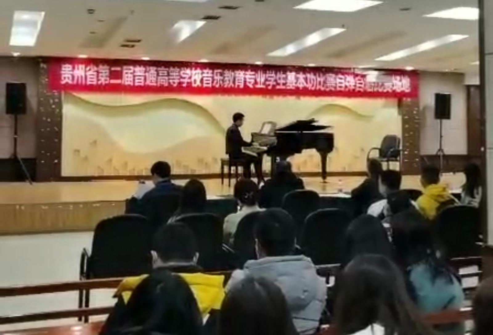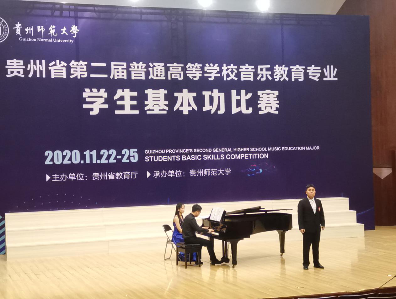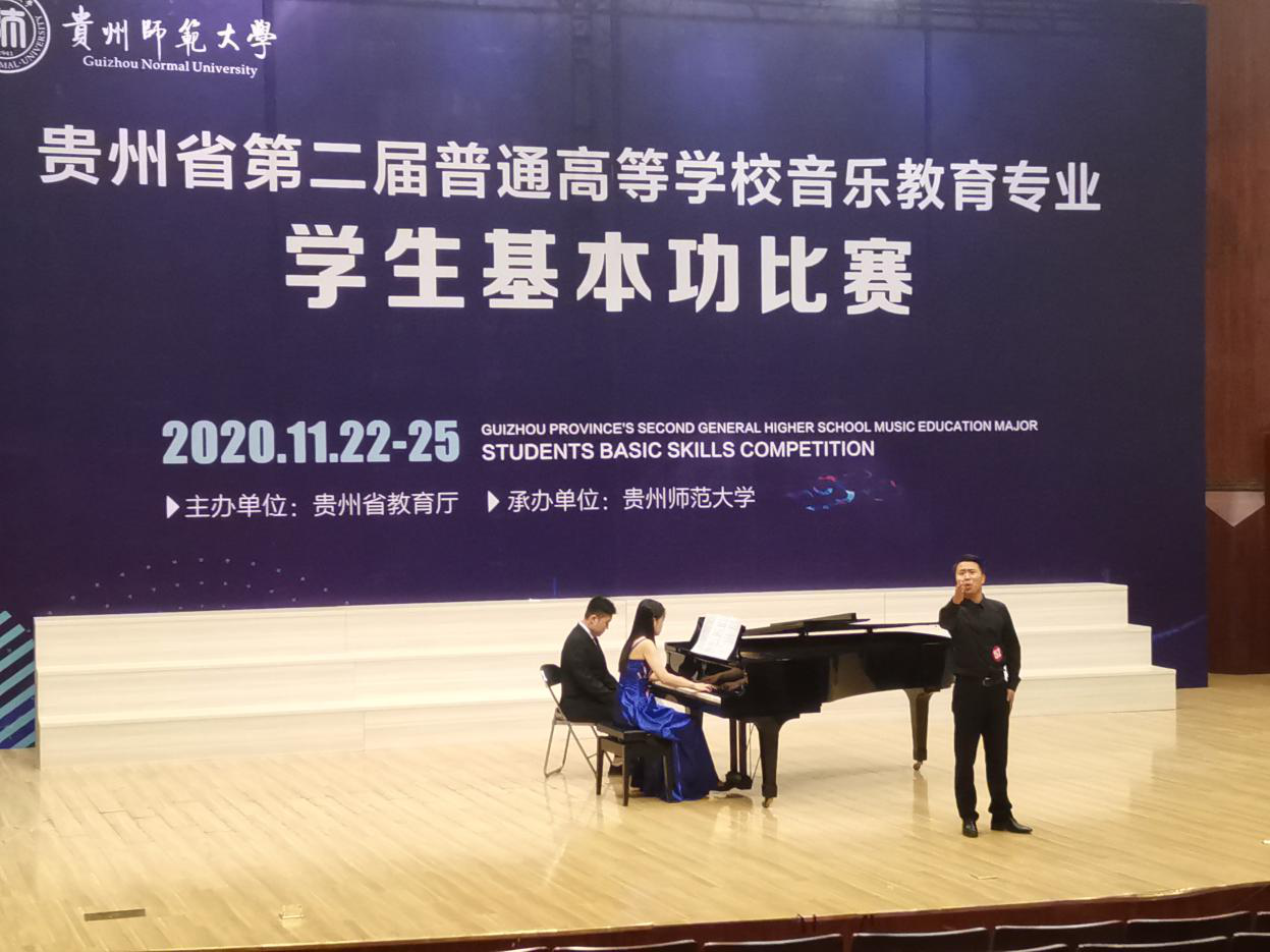 2020年11月23至25日,由省教育厅主办的贵州省“第二届普通高等学校音乐教育专业学生基本功比赛”在贵州师范大学国际音乐厅举行。全省共25个代表队、70多名学生参加了此次比赛。代表永利集团官网参赛的是我集团2017级音乐学的三位学生:王超权、姚茂、范玲玲。此次比赛由键盘系主任伍星老师领队,键盘系章晓丰老师随同前往比赛现场协助工作。