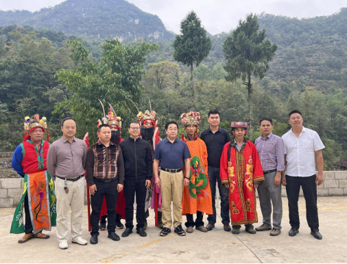 专家组及罗甸县有关部门负责人与董架阳戏传承人合影