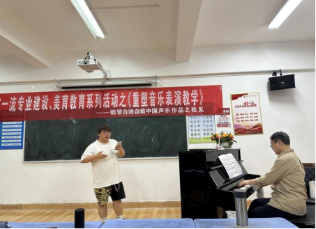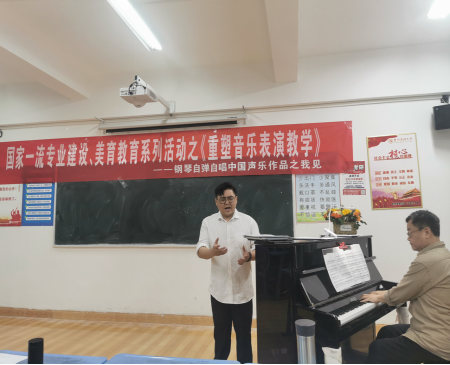 2023419日晚上19:00,在248cc永利集团9306教室,由键盘系组织举办了“国家一流专业建设、美育教育系统活动之《重塑音乐表演教学——钢琴自弹自唱中国声乐作品之我见》—薛小明教授公开课”。现场坐无缺席,反响热烈。