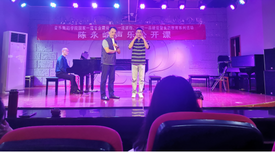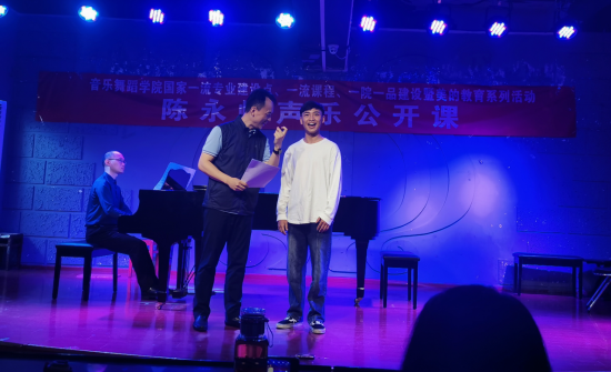 接下来,声乐系的学生陈贵彬、代光耀、陶自豪、万灿、饶安娜分别上台演唱作品,陈老师现场进行一对一教学指导。