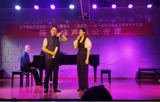 公开课上,陈老师首先指出用“唱什么、谁在唱、唱给谁、谁在听、听什么”的方法来深入了解分析作品;在声音技术上,用“深气息高位置,小通道说着唱”的理念来规范自己的歌唱状态;在情感处理上,通过情感的浓与淡、音量的大与小、语汇的断与连、歌词的说与唱这“四个对比”来进行作品处理,通过“控制的因果效应”来实现声音和情感的传递和收放自如;在舞台表演上,强调在课程设置上应加强戏曲、形体等肢体语言方面的培养和训练,始终以“演员”的身份规范自己眼神和舞台上的一招一式。