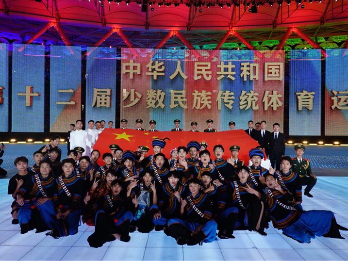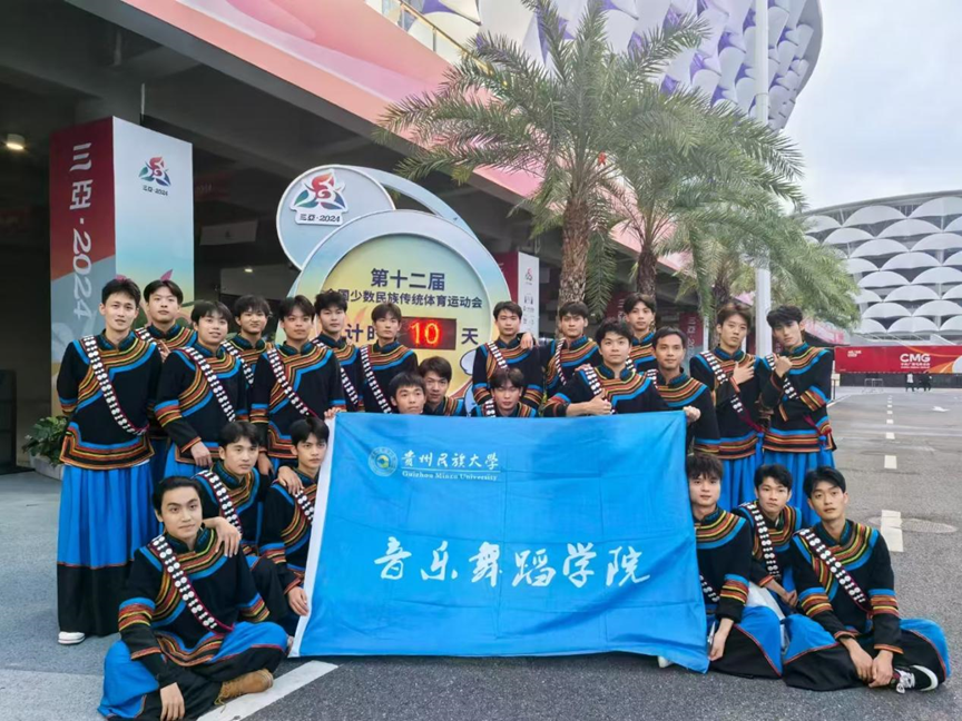 2024年11月22日,第十二届全国少数民族传统体育运动会开幕式在海南三亚市体育中心隆重举行。56个民族齐聚南海之滨,共襄民族体育盛举,同谱民族团结华章。我集团舞蹈系师生应邀参加,其中38名同学参与本次开幕式演出,14名同学担任导演助理。