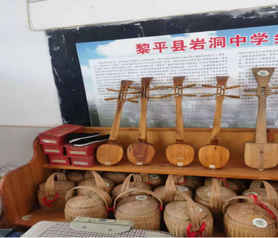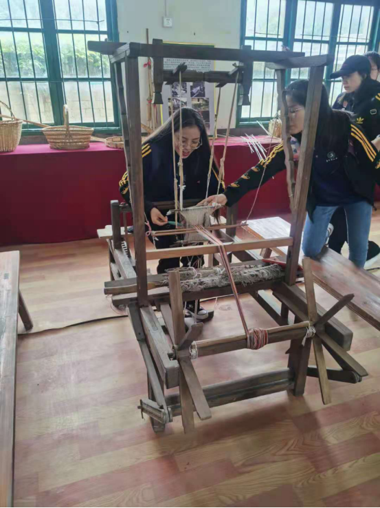 永利集团官网教育部中华优秀文化侗族大歌传承基地师生参观黎平县岩洞中学传统乐器陈列室并体验操作织布机